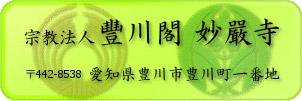 本尊は寒厳禅師伝来の千手観世音菩薩であり、鎮守として同師が感得された自作の通称豊川稲荷で親しまれる、豊川ダ枳尼眞天を祀っております。 寒厳禅師が1264年(鎌倉時代中期・文永元年)求法のために入宋し、1267年帰国の折、乗船中、妙相端麗、稲穂を荷い、宝珠を捧げ、白狐に跨るお姿の霊神が海上に現れ、御神示賜わりました。禅師は深く感動され、帰国の後、示現のお姿を手ずから刻まれ、終生守護の善神として祀られました。 これより後に法孫、東海義易禅師が、この豊川の地に圓福山妙厳寺を開創され遷座いたしました。